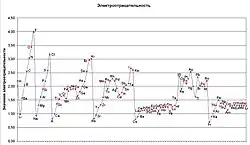 - ↑ Zefirov, n. S.; Kirpichenok, m. A.; IzMailov, f. F.; Trofimov, m. I. (1987). «Calculation schemes for atomic electronegativities in molecular graphs within the framework of Sanderson principle (Esquemas de cálculo para electronegatividades atómicas en gráficos moleculares dentro del marco del principio de Sanderson)». Doklady akademii nauk sssr 296: 883-887.
