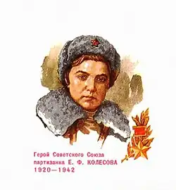 - ↑ «ГЕРОЙ СОВЕТСКОГО СОЮЗА КОЛЕСОВА ЕЛЕНА ФЁДОРОВНА». warmuseum.by (en ruso). Consultado el 12 de abril de 2018.