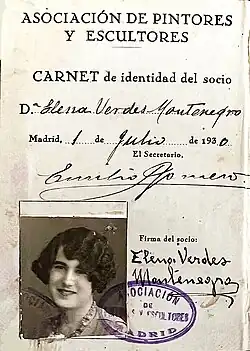 - ↑ a b c d e f g h i j k l m n Sellers Albaladejo, Consuelo (25 de agosto de 2023). Biografía de la pintora Elena Verdes Montenegro. Independently published. p. 214. ISBN 978-84-09-52908-7.