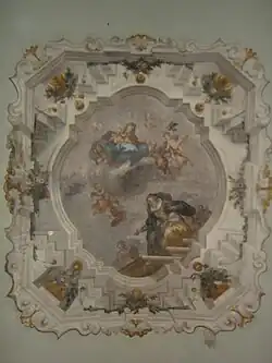 | Atributos | Contemplando a la Trinidad o presentando a las religiosas fundadas por ella. | ||