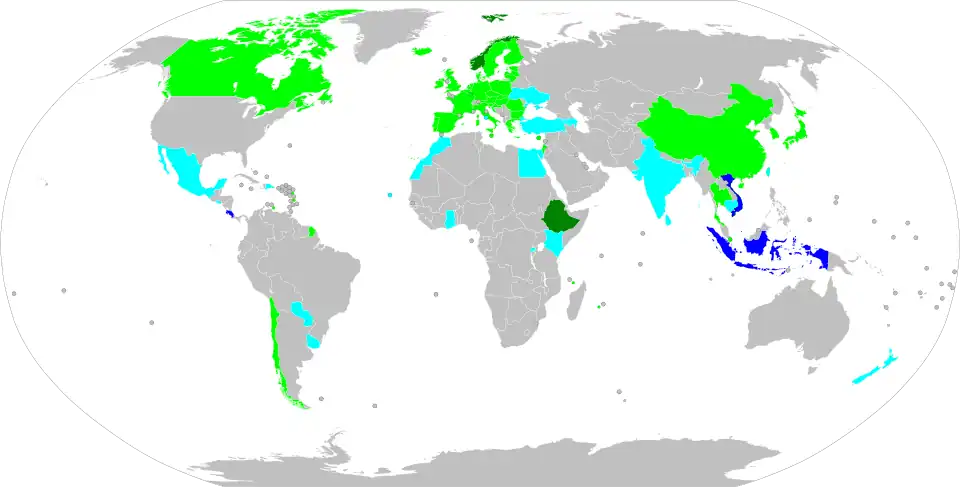 | País | Año de inicio | Estatus | Alcance | Detalles |