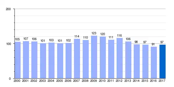 | Gráfica de evolución demográfica de Elosu[4] entre 2000 y 2017 |