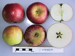- ↑ a b c d e f g La manzana 'Elton Beauty' en el "National fruit collection.org.uk". Consultado el 9 de enero de 2022.