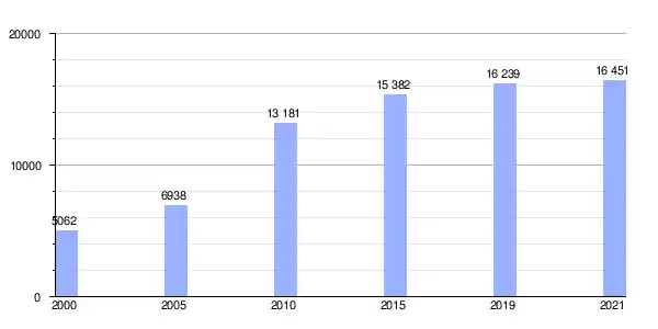 | Gráfica de evolución demográfica de Elviña (parroquia) entre 2000 y 2021 |