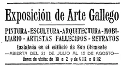 - ↑ «Exposición de Arte Gallego (anuncio)». El Compostelano (Santiago de Compostela). 29 de julio de 1926. p. 3.