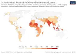 - ↑ United Nations Children’s Fund, World Health Organization, The World Bank. UNICEFWHO- World Bank Joint Child Malnutrition Estimates. (UNICEF, Nueva York; OMS, Ginebra; Banco Mundial, Washington DC; 2012)