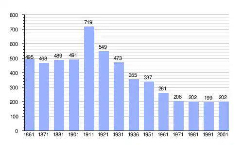 | Gráfica de evolución demográfica de Emarèse entre 1861 y 2001 |