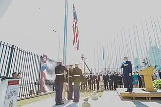 El 14 de agosto de 2015, el Secretario de Estado de los Estados Unidos, John Kerry reabrió oficialmente la embajada. También asistieron ocho legisladores del Congreso de los Estados Unidos involucrados en el cambio de la política estadounidense hacia Cuba.[19][20] Los tres marines que arriaron la bandera de Estados Unidos en la embajada en 1963 presentaron una nueva bandera que fue izada por tres nuevos marines.[21]