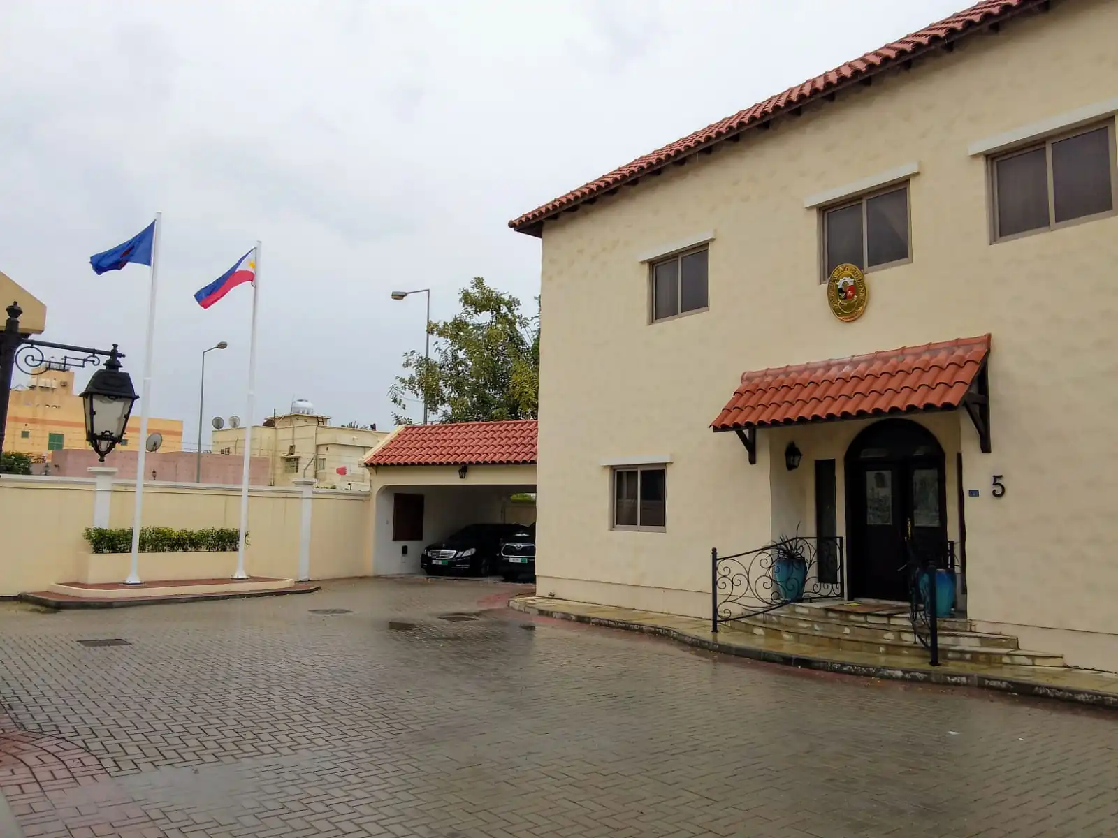 ![]() Fachada de la embajada filipina en Manama. | ||