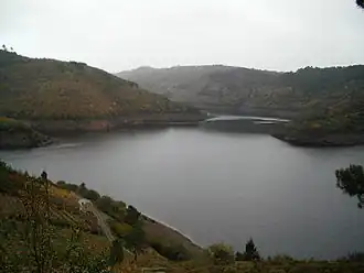 Vista del embalse de Belesar desde San Vitoria de Ribas de Miña, en la desembocadura del Sardiñeira | ||