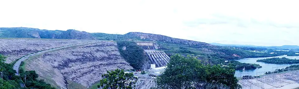 La construcción de la presa comenzó en 1957 y la primera turbina se puso en funcionamiento en 1963.[2] Fue la primera gran presa de Brasil y fue construida por Wimpey Construction. La presa tiene 127 m de altura, 550 m de largo y 15 m de ancho en su coronación. Para albergar a los trabajadores durante la construcción de la presa, se construyó cerca de la misma un pequeño asentamiento del mismo nombre.