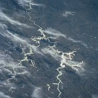 El embalse de Furnas, visto desde la ISS (la presa está en el centro superior) | ||