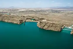La presa, de materiales sueltos,[3] tiene 100 m de altura y 270 m de longitud. Tiene una doble función, proveer de electricidad mediante una central hidroeléctrica de 151 MW, y regar una zona de unos 2000 km2 de desierto. La capacidad de almacenamiento del embalse es de 1.715.000.000 m3 (1,7 km3)