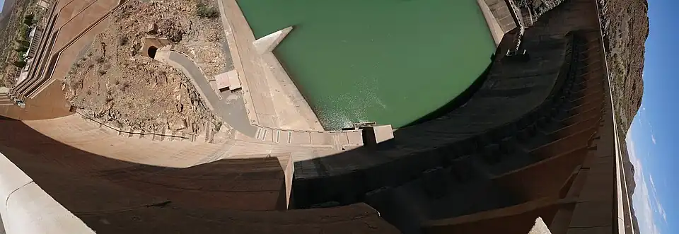 Las presas de Gariep y Vanderkloof, operadas por el Departamento de Aguas de Sudáfrica, forman los dos embalses más grandes del país, y junto con las centrales hidroeléctricas de Eskom, son parte integral del Esquema de Aguas del Río Orange.[1] Los embalses proveen agua para las ciudades, para regadío, recreación y para producir energía hidroeléctrica. La presa de Vanderkloof es de doble curvatura de concreto, con un volumen de 3326 m3 de hormigón. Tiene 2 turbinas de 120 y 240 MW, con una producción máxima de 360 MW. La turbina es una vertica Francis de 61 m, con un diámetro de 5,3 m.[2]