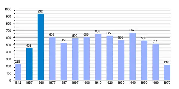 | Gráfica de evolución demográfica de Embid de la Ribera[3] entre 1842 y 1970 |