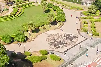 El empedrado portugués del Parque de la Independência es el pavimento ornamentado que atraviesa el jardín del parque y está formado por mosaicos de piedra portuguesa, incluyendo una gran figura de dragón rodeada de motivos florales y caminos con diseños simétricos.[1]