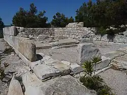 En la cima de la colina llamada «Profeta Elías» se ha encontrado un edificio prehistórico que podría haber sido la residencia de un jefe local, así como de un templo de Atenea de mediados del siglo VI a. C. que fue destruido a principios del siglo V y reconstruido en el siglo IV a. C. Esta acrópolis tenía una muralla de unos 800 m de largo y 2 m de altura. Por otra parte, en la ladera sudoeste se han encontrado restos de un asentamiento fundado en el siglo VIII a. C. Este fue abandonado hacia fines del siglo II a. C. Además, cerca del puerto había un templo dedicado a Apolo.[2][3][4]
