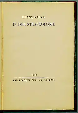 - Franz Kafka, In der Strafkolonie,Kurt Wolff Verlag, Leipzig, 1919