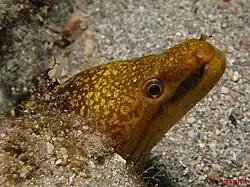 Enchelycore anatina, conocida comúnmente como morena tigre, morena picopato o morena de dientes cristalinos, es una especie de pez de la familia de los murénidos en el orden de los Anguilliformes.