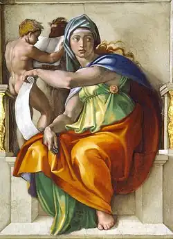 La Sibila Délfica, fresco de Miguel Ángel en la Capilla Sixtina, es la imagen de portada de la Enciclopedia Universal Micronet.