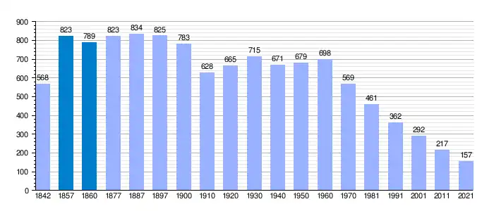 | Gráfica de evolución demográfica de Encinasola de los Comendadores[13] entre 1842 y 2021 |