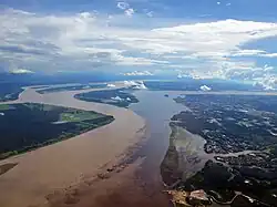 El encuentro de las aguas es la confluencia del río Negro, de aguas más oscuras casi de color negro, con el río Amazonas, de aguas más claras con tonalidad arcillosa. Durante 6 km las aguas de los dos ríos corren lado a lado sin mezclarse, y es una de las principales atractivos turísticos de Manaos. En algunos puntos tiene hasta 60 metros de profundidad.