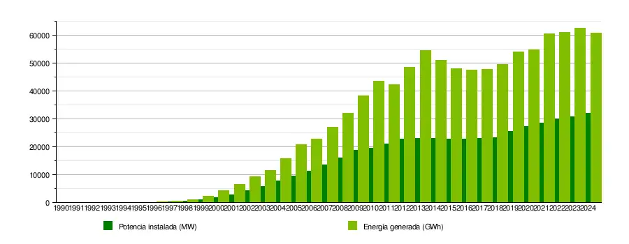 - ↑ «Generación total de energía eléctrica». Red Eléctrica de España. Enero de 2025.