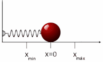 Lo que representa el incremento de energía potencial elástica que adquiere la masa m al estirar el muelle de a . Si el resorte se comprime respecto de su longitud natural, en lugar de estirarse, los razonamientos son análogos pero la elongación del muelle respecto de su posición de equilibrio será negativa. De esta forma la masa m oscilará en torno a la posición de equilibrio entre una posición de máximo estiramiento y otra de máxima compresión . La energía potencial elástica será máxima en las posiciones extremas de alargamiento y compresión y será cero en el equilibrio.
