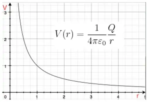 estando la carga fuente Q en el origen de coordenadas. El potencial eléctrico tiene el mismo comportamiento con la distancia r que la energía potencial eléctrica.