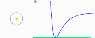 - Si la energía total es negativa y de valor absoluto igual a la mitad de la energía potencial (mínimo de la curva), la trayectoria es una circunferencia con centro en el origen de las fuerzas.