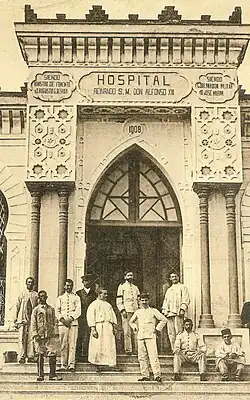 Fue construido entre 1907 y 1908 con una única planta como Enfermería Indígena, según proyecto de Manuel Becerra, aunque en un principio los kabileños de las cercanías no lo usaban. En 1909 después de su cesión, pasó a ser hospital militar. En 1911 se intentó ampliar con los terrenos del Barrio Hebreo, pero sus habitantes lo impidieron. En 1912 el cuerpo y los efectos personales de El Mizzian se expusieron en él después de ser abatido por unos regulares.[3][5]