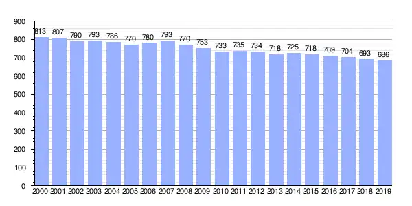 Población de derecho según los censos de población del INE Población de hecho según los censos de población del INEEntre el censo de 1970 y el anterior, este municipio desaparece porque se integra en el municipio Santiago[7] |