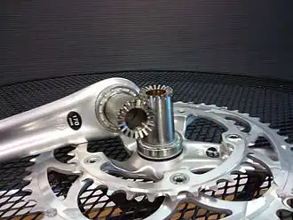 El eje hueco de la mitad derecha e izquierda de los juegos de bielas del fabricante de componentes Campagnolo y del fabricante de bicicletas "Specialized" para bicicletas de montaña y de carretera se encajan en el medio y se aprietan durante el montaje. Debido al ángulo de flanco muy pronunciado, estas conexiones tienen las características de un embrague de empuje.