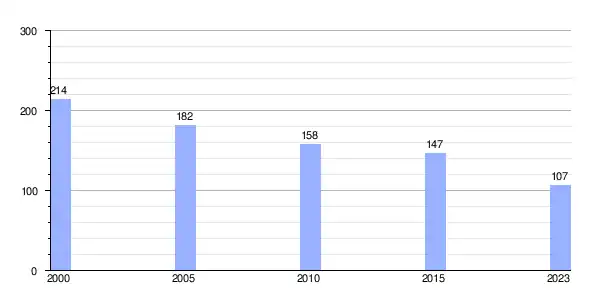 | Gráfica de evolución demográfica de Enjames entre 2000 y 2023 |