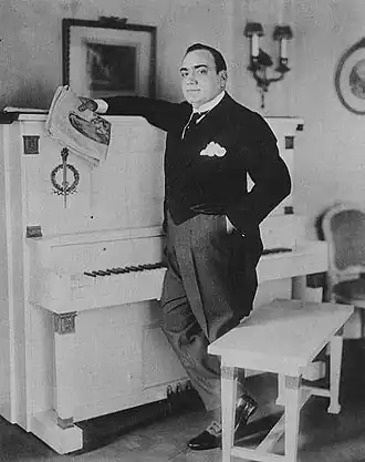 Enrico Caruso (Nápoles, 25 de febrero de 1873-Nápoles, 2 de agosto de 1921) fue un tenor italiano, el cantante más popular en cualquier género entre 1900 y los años 1920 y uno de los pioneros de la música grabada. Su gran éxito de ventas y una voz extraordinaria, aclamada por su potencia, belleza, riqueza de tono y técnica superlativa, le convierten en el más famoso cantante de ópera del primer tercio del siglo XX. Fue uno de los primeros ejemplos de celebridad mundial popular, familiar para millones de personas en todo el mundo a través de periódicos, revistas, libros y el novedoso cinematógrafo.