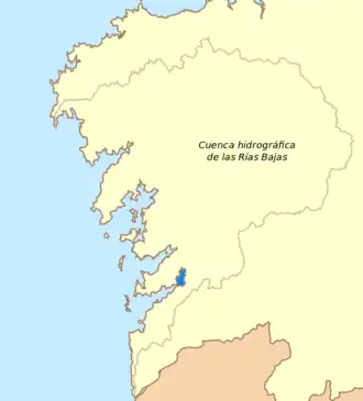 El acceso a la ensenada se realiza por el estrecho de Rande, la parte más estrecha de la ría de Vigo, cruzado por el puente de Rande, uno de los puentes atirantados más relevantes del mundo. En el centro de la ensenada se encuentran pequeñas islas de San Simón y San Antón, unidas ambas por un puente de tres ojo y pertenecientes a Redondela. La ensenada tiene unos 7 km de norte a sur.