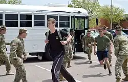 ![]() Nuevos reclutas del Ejército estadounidense llegando a la base de entrenamiento. | ||