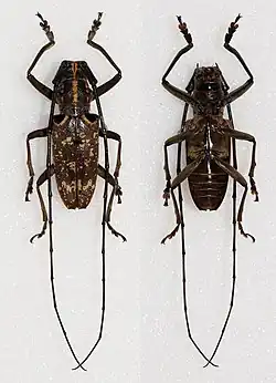 - ↑ a b c d e «Epepeotes luscus». Instituto de Investigación para el Desarrollo - Base de données Titan sur les Cerambycidés ou Longicornes (en francés). Consultado el 20 de julio de 2022.