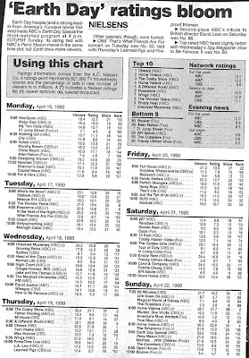 - ↑ a b «'Earth Day' ratings bloom». USA Today (en inglés). 16 de abril de 1990. Consultado el 17 de febrero de 2015.