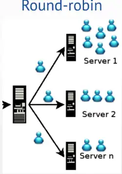 • Round-Robin: las peticiones son distribuidas entre los servidores de forma cíclica, independientemente de la carga del servidor. Distribuye de forma ecuánime el número de peticiones, pero no la carga.