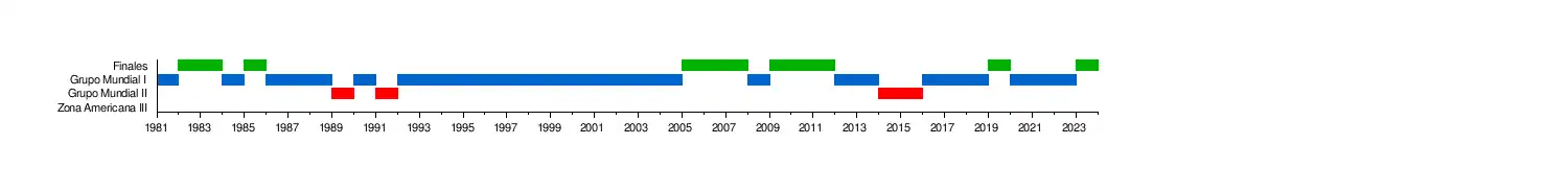 En 1982 entró al Grupo Mundial, compuesto por 16 equipos, llegando a cuartos de final. En 1983 y 1985 llegó a octavos de final.