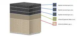 A continuación, se muestra un ejemplo de cálculo de GBE adoptado de Piryonesi (2019).[1] El ejemplo es sobre una carretera de la base de datos LTPP. Este camino está hecho de estas capas: subbase, base y tres capas de concreto asfáltico caliente. Sus espesores se dan en milímetros en la siguiente tabla. El GBE total para esta carretera 805,7 milímetros.