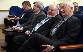 - Una fotografía de E. M. Galimov en la galería de científicos destacados de la Universidad Estatal de Moscú "Retrato del intelecto", creada en 2005 para el 250 aniversario de la universidad (foto de Sergei Novikov).