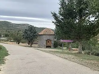 Su planta es hexagonal, levantándose en muro de piedra hasta una cubierta de teja árabe de seis faldones, que forman un tejado campaniforme. La puerta es de madera con dintel curvilíneo y una pequeña ventana con cerrajería que permite ver el altar de la ermita desde el exterior.[3][2]