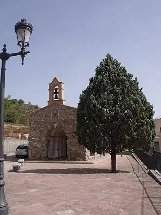 Está constituida por un pequeño edificio, de planta rectangular, y una sola nave con dos tramos; y fábrica de mampostería, piedra angular y revestimiento exterior de mortero de agua, arena y cal o cemento, que se aplica, en una o más capas, a un paramento enfoscado previamente. A los pies del edificio existe una puerta que presenta un arco de medio punto punto, mientras que el techo es a dos aguas.[1][2] La ermita está rematada en su parte superior por una espadaña de una sola campana.[1][2]