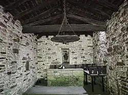 Por estar la ermita abierta hacia el pórtico, mediante una reja de hierro que abarca la totalidad del flanco del Poniente, el recinto carece de vanos de luz. En la parte baja de la reja, se encuentra un recipiente de hierro para contener el aceite cuya unción, según tradición, remedia las dolencias de oído.[5]