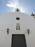 Presenta espadaña en la fachada principal, en la que podemos observar otros tres elementos arquitectónicos: la puerta de acceso al templo es de planchas rectangulares metálicas y en uno de los portillos presenta el año 1987 con tachuelas (fecha de la última intervención en el templo ),[5] tiene tres escalones y está adintelada decorada a cada lado por farolas de forja; una hornacina sobre la puerta con la imagen de San José y el Niño, y, finalmente, un óculo redondo sobre el anterior elemento. Los tres centrados en la fachada principal que se remata con la mencionada espadaña que tiene una única campanilla, y veleta. La cubierta, a dos aguas, es de tejas.[3]