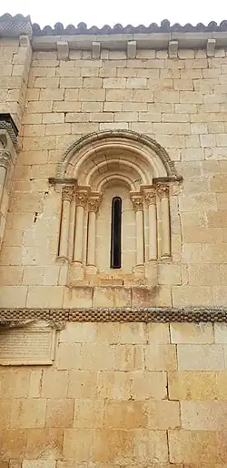 Las ventanas situadas al sur, junto a la portada y al presbiterio, están compuestas por tres pares de columnas exentas con capiteles de acanto. Arcos de medio punto, con arquivoltas baquetonadas, las conforman. La del cabecero se encuentra decorada, en su arquivolta central, con hojas de acanto. La ventana del ábside, aunque parecida, presenta solo dos pares de columnas.