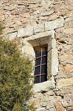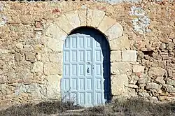 «Los muros son de mampostería ordinaria, con sillares en las esquinas. La entrada posee arco de medio punto basado en dovelas de piedra caliza, situada en la fachada meridional, ligeramente descentrada hacia los pies. [...], la construcción posee varias aberturas en el muro: tres cuadrangulares en la fachada meridional de la nave, bajo el alero y otra vertical, a modo de arpillera, en el centro del muro del cuerpo de cabecera. Por encima del cabio superior de esta abertura hay dos piezas de piedra longitudinales, con una tercera cuadrangular en el centro, que luce una cruz trinitaria labrada (circular)».[1]Veguillas de la Sierra, Teruel, Alfredo Sánchez Garzón