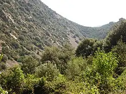 - La Puerta del Cierzo, generada por el estrechamiento del cauce, dada la proximidad de la pared vertical del barranco, da comienzo a un nuevo paisaje con gran abundancia de vegetación (carrascas, bojes, ruscos…) y el camino comienza a hacerse más escarpado en su transición a la sierra. Existe una fuente que brota la mayor parte del año.
